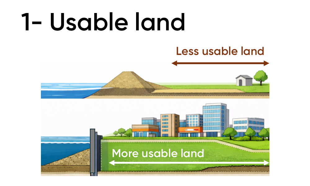 Les rideaux de palplanches nécessitent une largeur de construction minimale par rapport aux structures en terre, ce qui maximise la surface utilisable.
