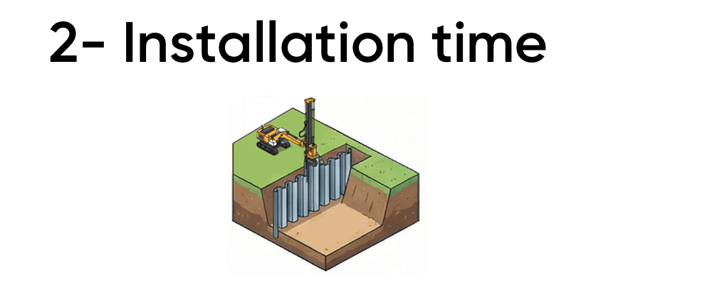 Les palplanches sont très économiques grâce à leur rapidité d'installation. Une fois foncées dans le sol, elles sont immédiatement opérationnelles, contrairement aux murs de soutènement préparés in situ – tels que les murs en béton – qui nécessitent des périodes de durcissement supplémentaires avant d'atteindre leur pleine résistance mécanique. La réduction du temps de travail, de l'utilisation du matériel et la remise en service plus rapide se traduisent directement par une diminution des coûts globaux du projet.
