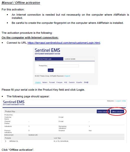 The manual activation procedure, described on page 10 of the installation manual of the software, which is normally provided with the installation package, takes less than 10 minutes and works in almost all the cases.